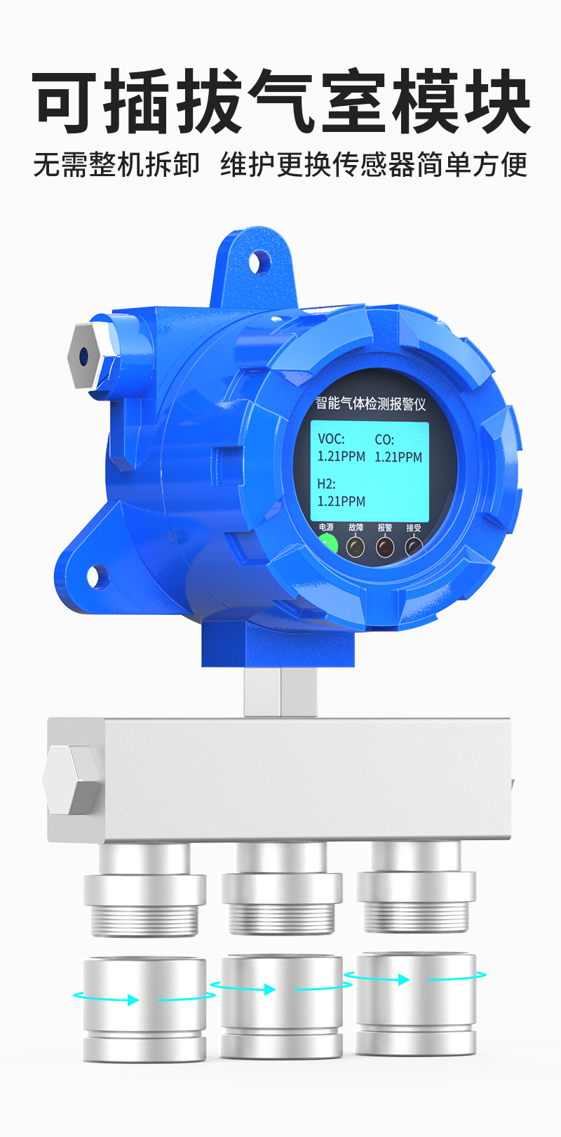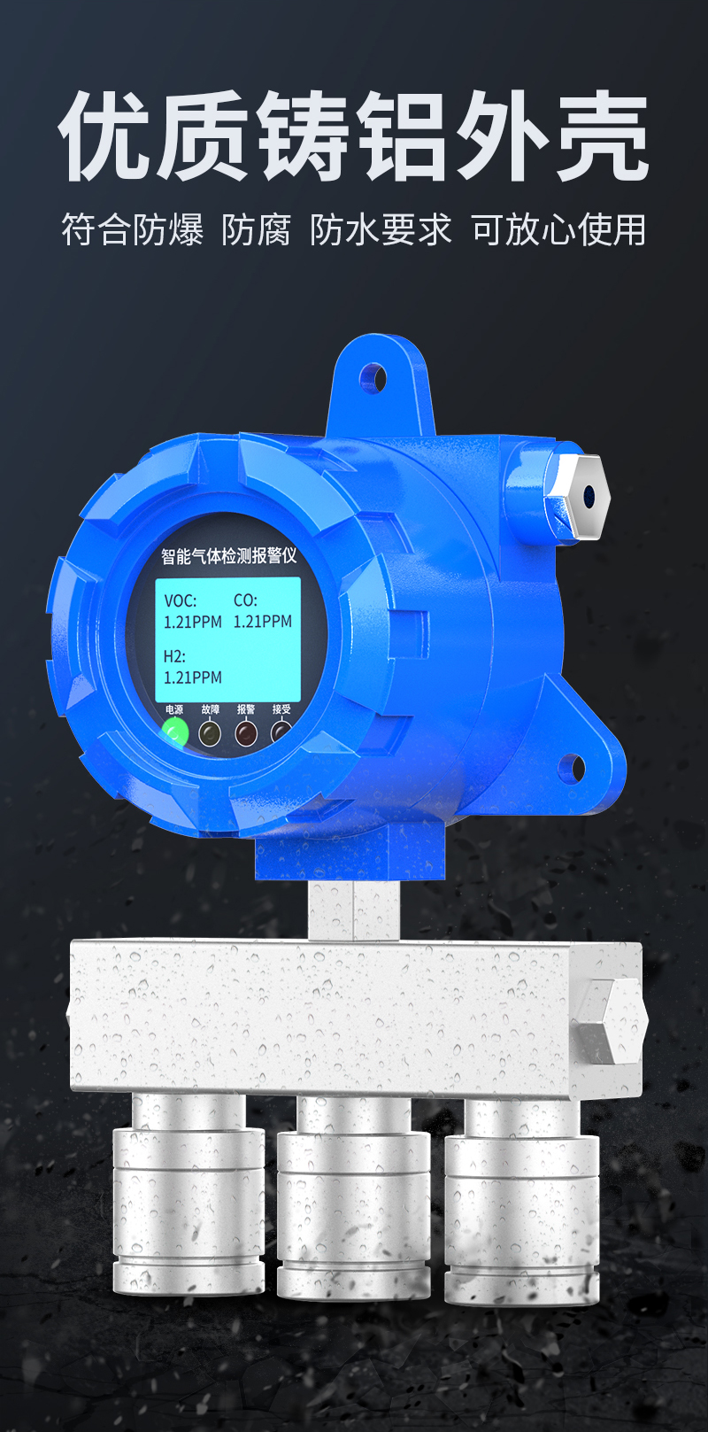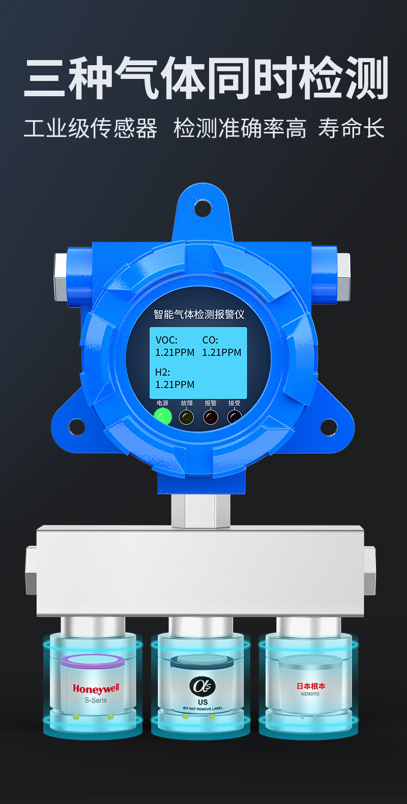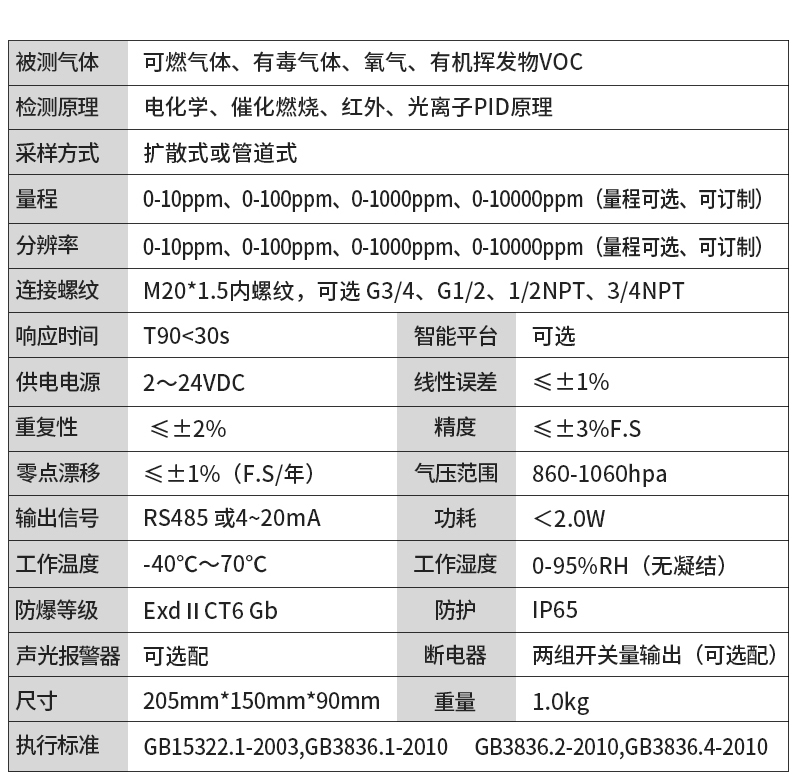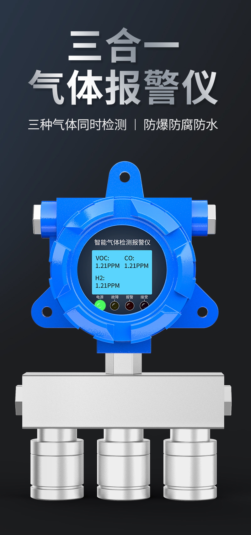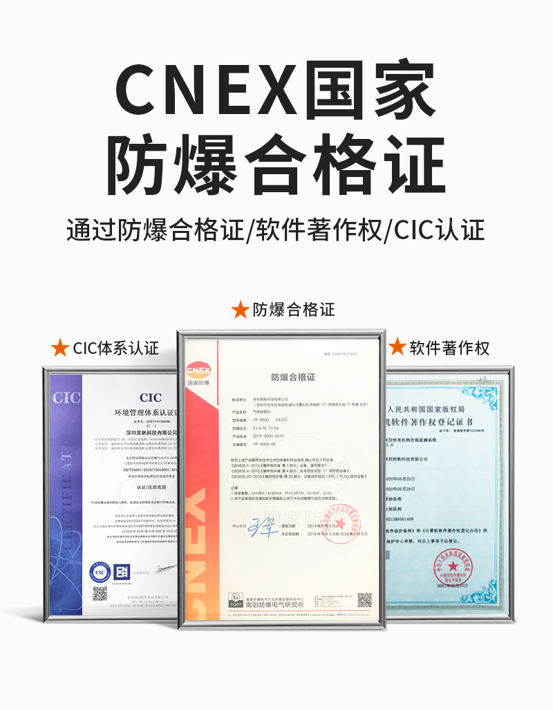 奕帆科技YF-8500-X3防爆型三合一氣體檢測儀,可同時檢測三種氣體。適用于石油化工等存在易燃易爆或有毒氣體的場所,可實時準確檢測氣體濃度。采用進口高精度傳感器和微控制器技術,響應速度快,測量精度高,穩定性和重復性好等優點。防爆接線方式活用于各種危險場所,并兼容各種控制報警器,PLC,DCS等控制系統,可以同時實現現場報警預警,4-20mA標準信號輸出,繼由器開關量輸出,易示各項技術指標和顯示濃度值,同時具有多種極的電路保護功能,有效防止各種人為因素,不可控因素導致的儀器損壞。