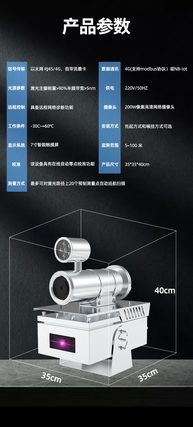 可視化 TSP 監測儀采用高靈敏的進口組件,整合多個行業中的光機電一體化技術,采用有精密跟蹤功能的紅外激光照明器,配合各種規格的長焦距的高性能攝像機,實現環境顆粒物濃度檢測。