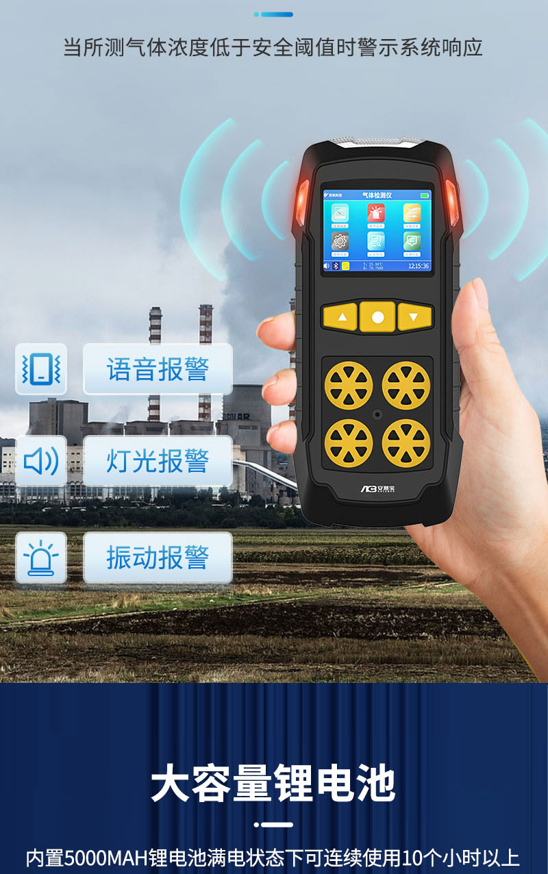 該設備采用高精度傳感器,響應速度快,測量精度高,穩定性強重復性好,可連續測量環境空氣中的VOC、可燃氣體有毒有害氣體等氣體。產品采用擴散式測量,內置濾網,防止大型顆粒物影響傳感器和儀器。配置1.9寸液晶點陣屏幕顯示實時濃度,電量。大容量存儲歷史數據,可存儲十萬條歷史記錄,1萬條報警記錄,支持本機查看。內置2000mAH大容量鋰電池,可連續工作10小時以上。