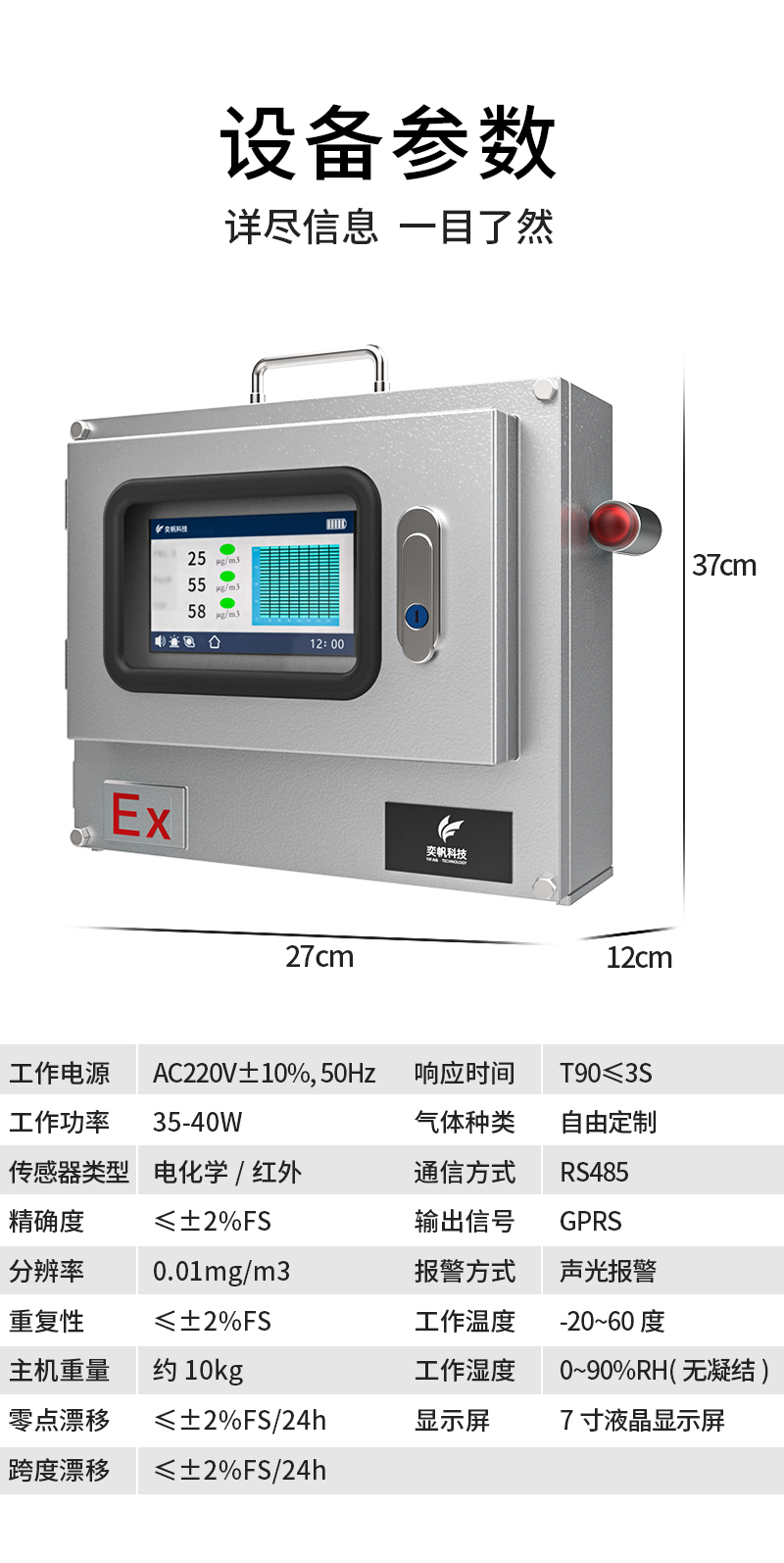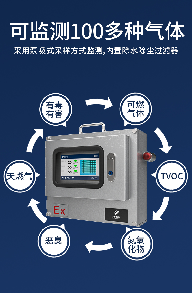 分析儀設計結合了防腐防爆外殼,滿足了惡劣環境中的使用要求。產品采用泵吸式采樣測量氣體,配備優質進口傳感器,具有較高的靈敏度及出色的重復性。儀器采用嵌入式微機控制,操作簡單,功能齊全,可靠性高,具有多種自適應能力,使用圖文液晶顯示器,直觀清晰。