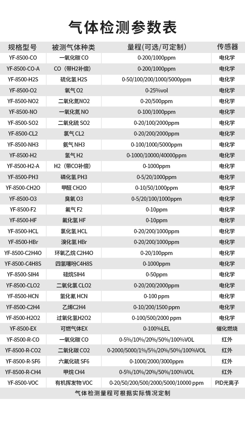 可按需定制檢測氣體類型、量程、名稱、logo 、銘牌及功能模塊 -