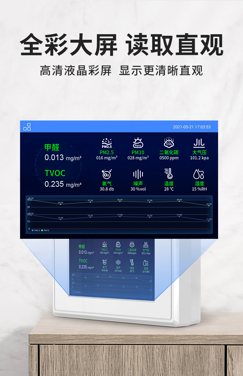 YF-AQI-V1奕帆室內空氣質量監測系統用于連續監測甲醛、TVOC、PM2.5、PM10、溫度、濕度、噪聲、大氣壓、二氧化碳和氧氣等。選用進口高精度電化學傳感,PM2.5、PM10傳感器是選用進口高精度光散射法傳感器。可通過藍牙wifi、GPRS信號進行聯網和系統控制。