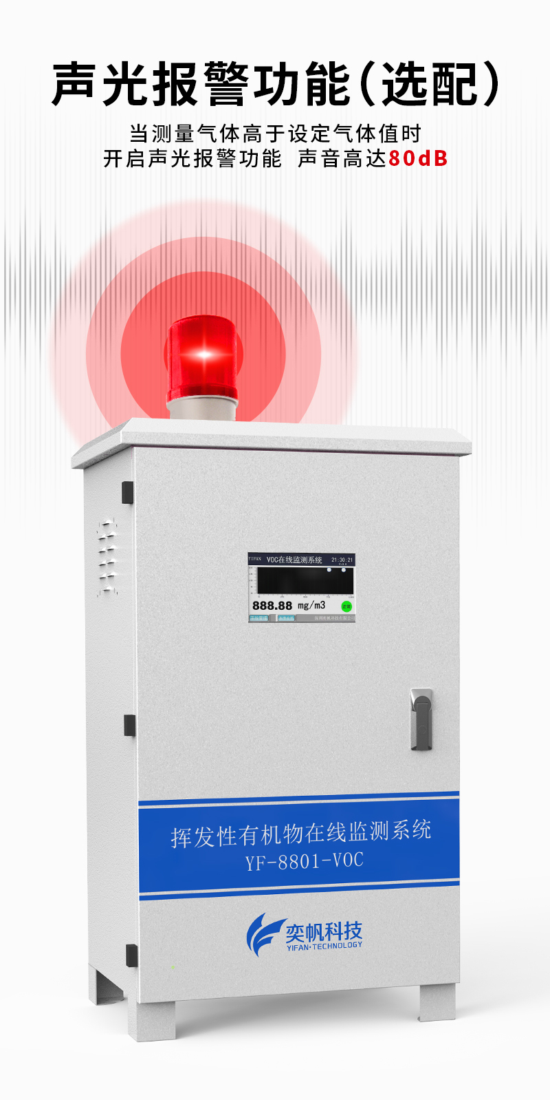 奕帆科技TVOC在線監測系統,適用于連續監測無組織環境空氣中的非甲烷總烴、苯、甲苯、二甲苯等揮發性有機物氣體。產品選用進口原裝(baseline)高精度PID光離子傳感器,采用泵吸式采樣監測,內置多重預處系統,包括除塵冷卻除水過濾等,可以很好的保護傳感器不受侵害,保證監測數據的準確穩定。可在app和云平臺查看實時數據、歷史數據、導出數據等同時具備24小時連續監測、超標報警、數據存儲功能。產品已獲得CCEP中國環境環保協會認證、CMA檢測報告:軟件著作權登記證書。