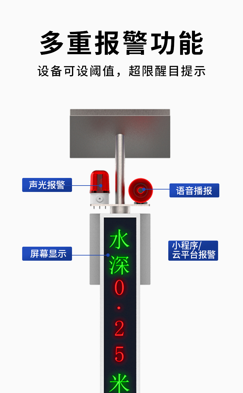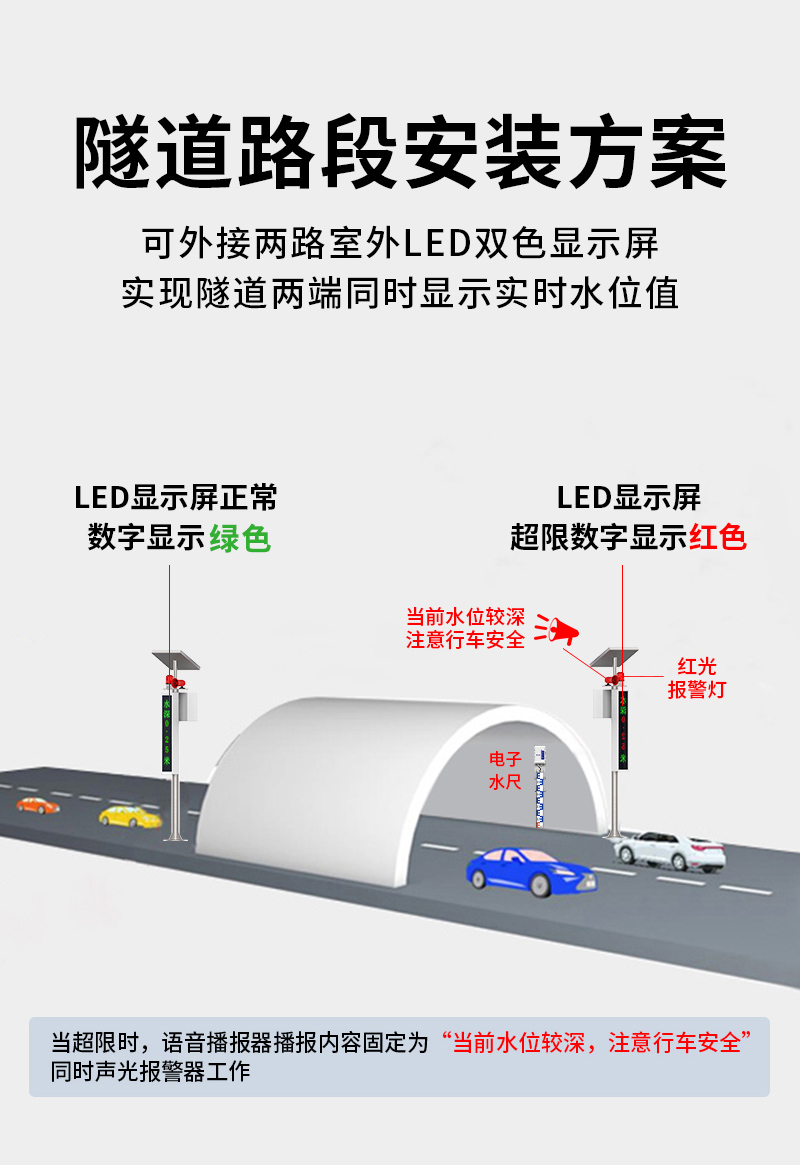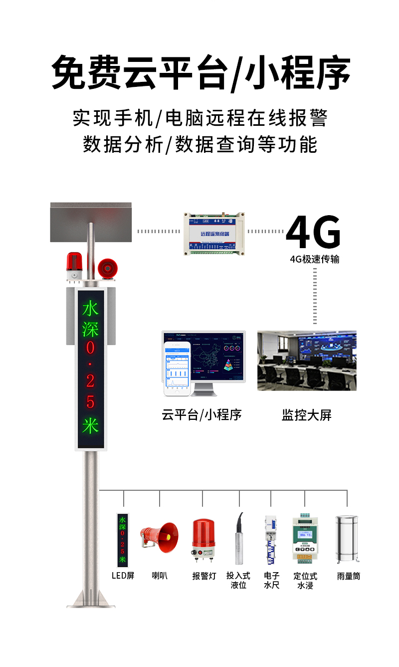 該系統不僅具備連續監測功能,還可根據用戶需求靈活配置報警控制模塊。當水位超出預設安全值時,系統將立即啟動聲光報警,及時預警相關人員采取應急措施。監測數據通過先進的無線傳輸技術實時同步至云平臺,支持多終端遠程訪問和集中管理,為城市防汛指揮和交通調度提供智能化決策支持。